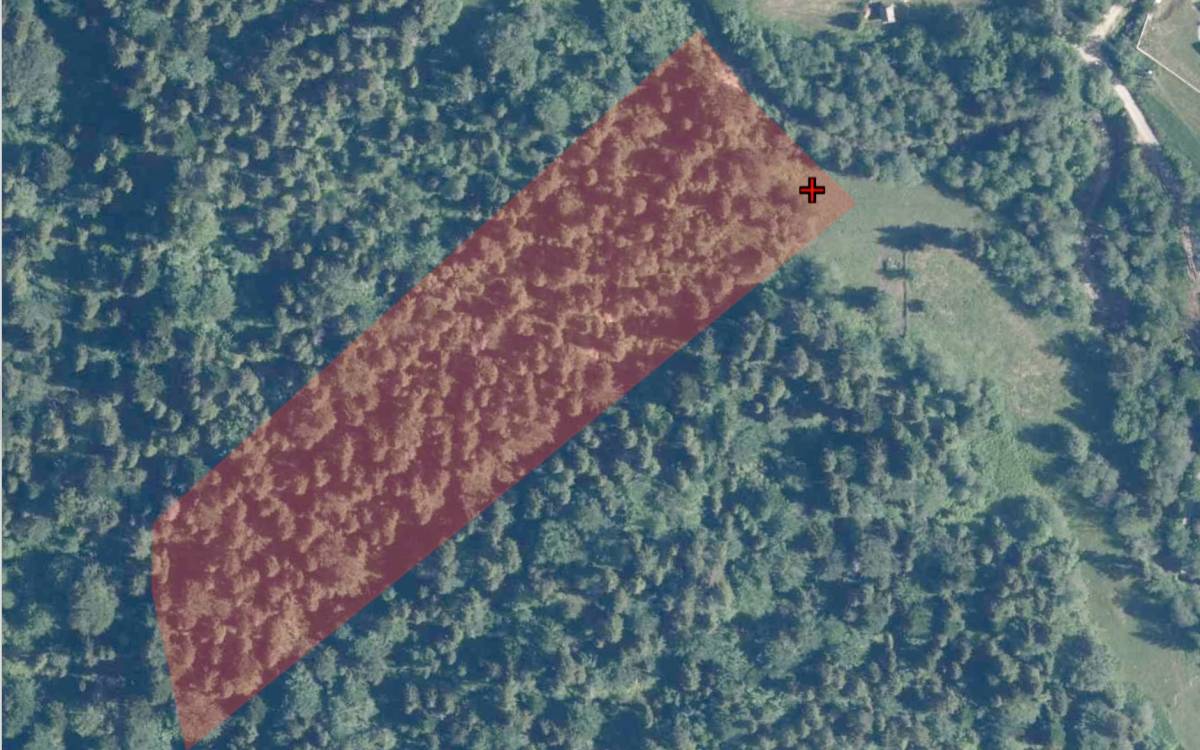 dł. 250 m, szer. 61-72 m. Teren pochyły. Numer działki 3111/1. Na miejscu znajdziemy dojrzały drzewostan oraz młodnik.